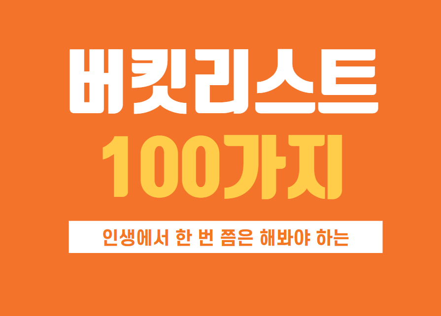 버킷리스트. 사람들이 꼭 해보고 싶은, 인생에서 한 번은 해봐야 하는 것들이라는 뜻입니다. 인생에서 해봐야 하는 게 뭐가 있을까요? 막상 생각하려면 또 생각이 안 나고, 또 가끔 하고 싶은 게 있다고 해도 그걸 메모하는 사람들은 적을 겁니다. 오늘은 버킷리스트 100가지를 완벽하게 추천하는 글을 작성하려 합니다. 대분류를 설정해서, 여러분들이 원하는 버킷리스트를 꼭 찾으셨으면 좋겠습니다.