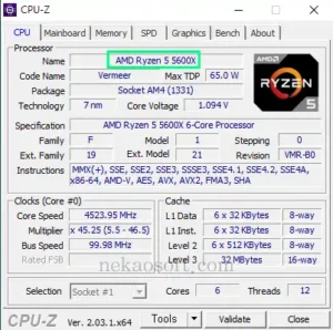 CPU의 정보가 나와있습니다. 무슨 소켓을 사용하고, 캐쉬 메모리는 어떻게 동작하고 있는지 자신의 CPU의 코어와 스레드가 몇 개인지 확인할 수 있습니다. 보통 CPU의 종류만 확인하시는 분들이 많습니다. 그리고 CPU-z를 이용하시는 분들이 가장 많이 확인하시는 부분입니다.