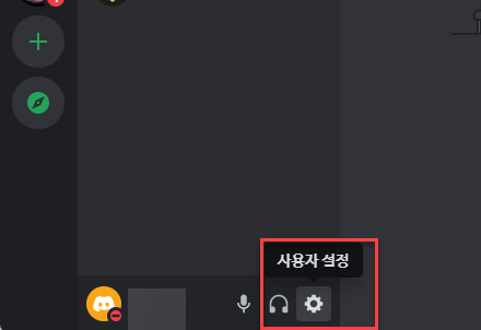 디스코드를 실행한 후, 왼쪽 하단에 보면 톱니바퀴 모양의 [사용자 설정]을 눌러줍니다. 그럼 아래와 같은 화면이 뜹니다. 마우스를 스크롤하면 내릴 수 있습니다.