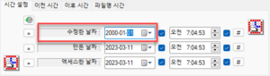 특정 시간대, 예를 들어서 2000-01-01에 수정한 것으로 만들려면 이렇게 키보드로 입력해서 바꿀 수 있습니다. 수정 날짜는 보통 최근 시간대로 하기 때문에 굳이 만지진 않을 겁니다.