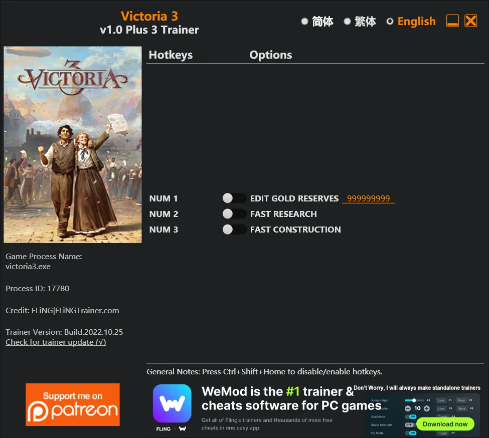 ✔파일명 : Victoria.3.v1.0.Plus.3.Trainer